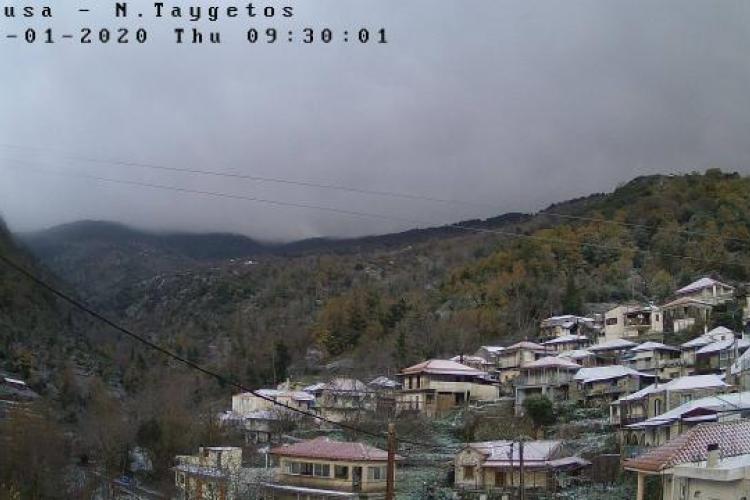 Η θερμοκρασία στην Καλαμάτα είναι 9 βαθμοί ενώ στα λευκά «ξύπνησαν» χωριά του Ταϋγέτου σήμερα το πρωί. Η φωτογραφία είναι από τη Νέδουσα.
