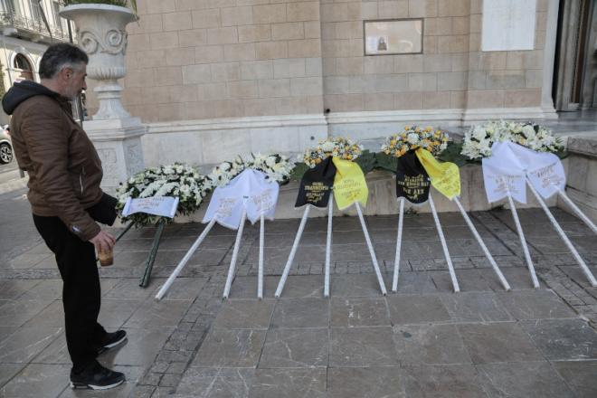 Στεφάνια γέμισαν τον χώρο της Μητρόπολης, ενώ απλός κόσμος με λουλούδια στα χέρια αποχαιρετά τον Κώστα Βουτσά.