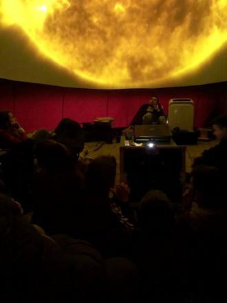 Την εκδήλωση φιλοξένησε ο προαύλιος χώρος του Ι.Ν. Αγίου Αθανασίου όπου στήθηκαν οι εγκαταστάσεις και οι μικροί μαθητές είχαν την ευκαιρία, συνοδευόμενοι από τους δασκάλους τους, να γνωρίσουν το σύμπαν μέσα από προβολές παιδικών ταινιών, να διασκεδάσουν και να μάθουν για τους πλανήτες , ταξιδεύοντας στο διάστημα.