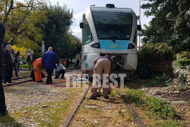 Πρόκειται για τον συρμό που εκτελούσε το δρομολόγιο από την Κάτω Αχαΐα και εκτροχιάστηκε για άγνωστους λόγους λίγο πριν φθάσει στο σταθμό του ΟΣΕ στην Τριών Συμμάχων.