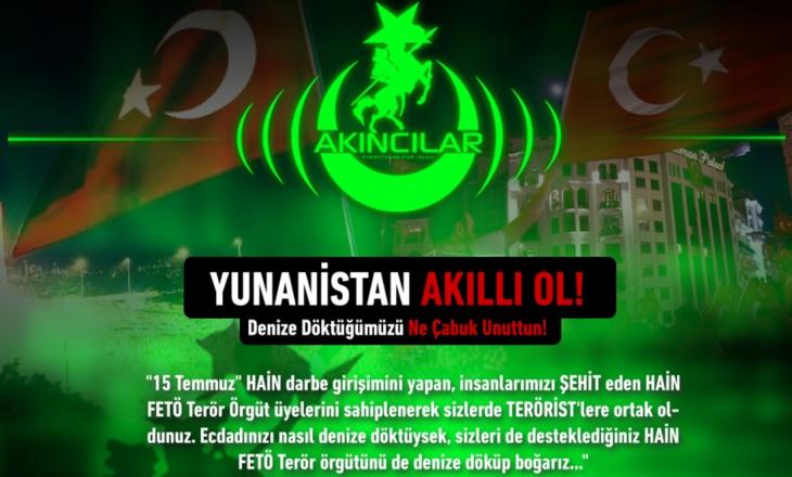 «Όπως πετάξαμε τους προγόνους σας στη θάλασσα, έτσι θα πετάξουμε εσάς και το τρομοκρατικό κίνημα Γκιουλεν το οποίο υποστηρίζεται, στη θάλασσα!», καταλήγει το προκλητικό μήνυμα.